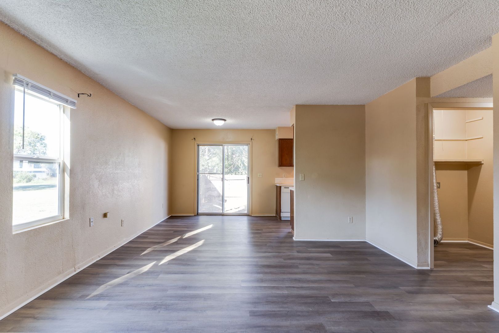 Kitchen Appliances Provided: Stove, Dishwasher, Refrigerator.