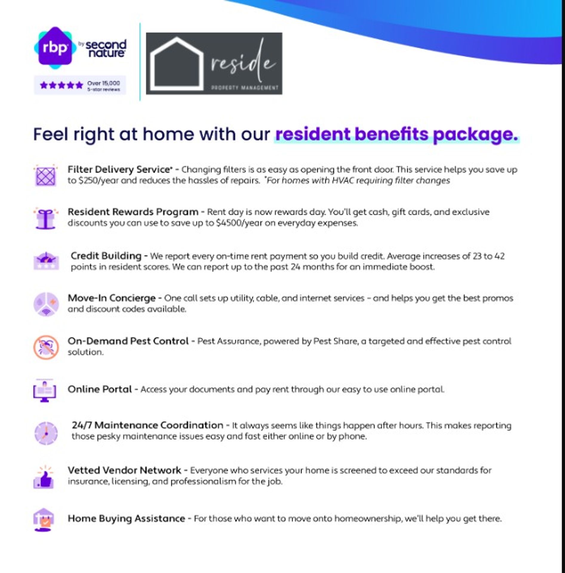 *see listing photos for more details on the Resident Benefits Program.